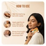 This bar is crafted with pure glycerin and turmeric in an ayurvedic base that provides a creamy, luxurious lather. The formula is gentle on sensitive or dry skin and helps maintain a soft, radiant appearance after every wash. Its fragrance is mild and comforting, enhancing the soothing bathing experience